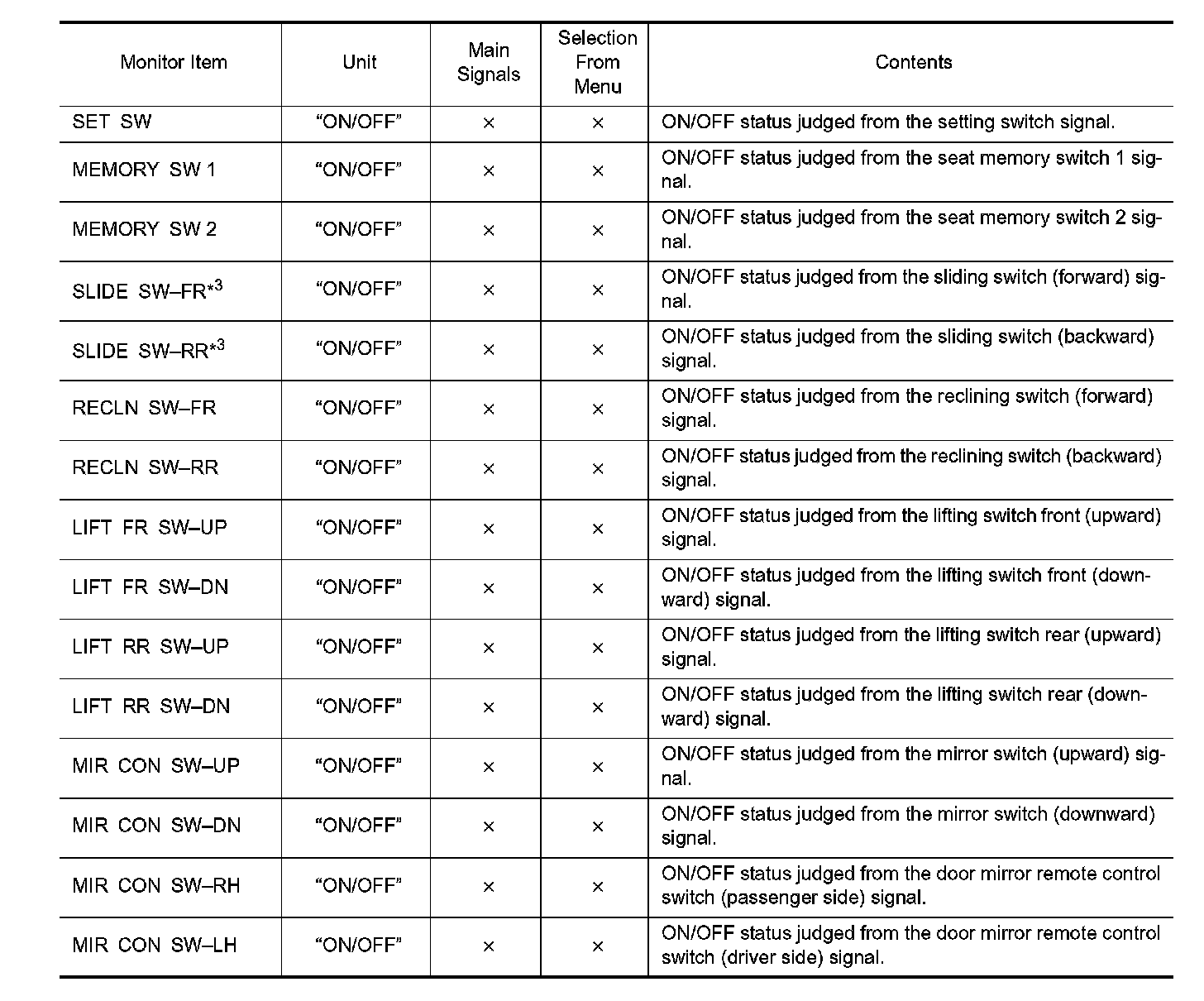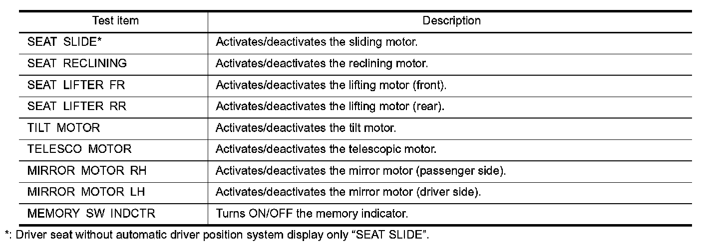 DIAGNOSIS SYSTEM (DRIVER SEAT C/U)
