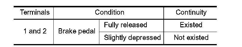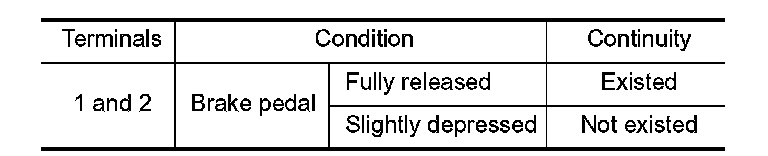 2. Check the continuity between ASCD brake switch terminals under the following conditions.