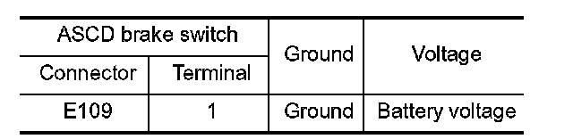 4. Check the voltage between ASCD brake switch harness connector and ground.