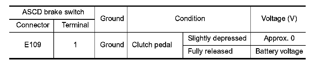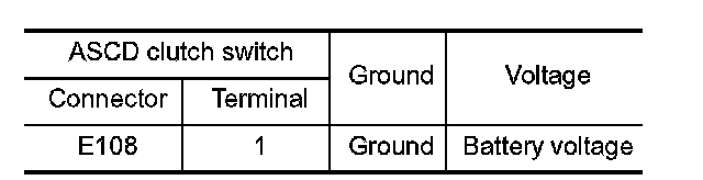 4. Check the voltage between ASCD clutch switch harness connector and ground.