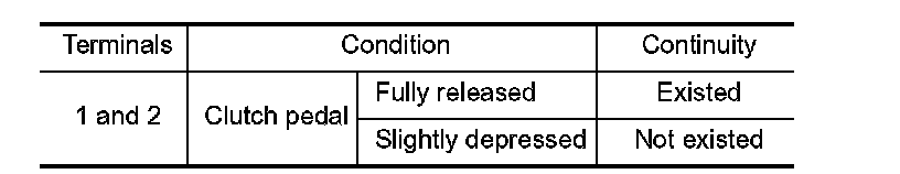 3. Check the continuity between ASCD clutch switch terminals under the following conditions.