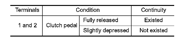 2. Check the continuity between ASCD clutch switch terminals under the following conditions.