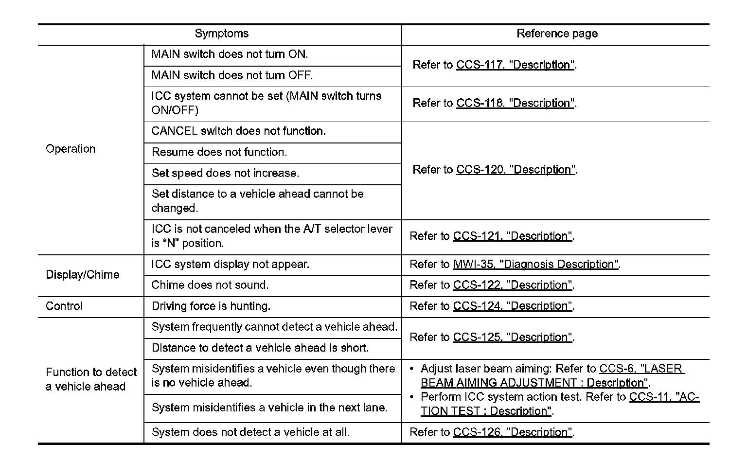 Intelligent Cruise Control System Symptoms