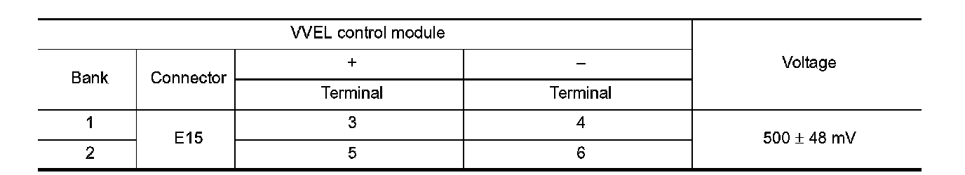 10. Reconfirm that the output voltage of VVEL control shaft position sensor is within the standard value.