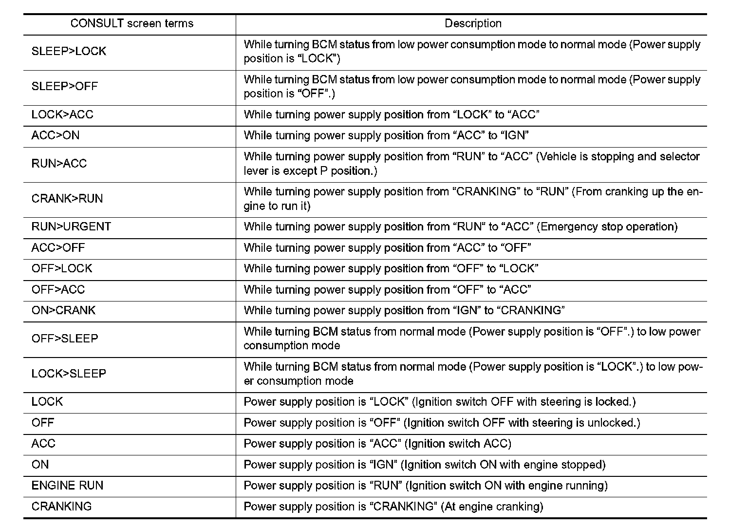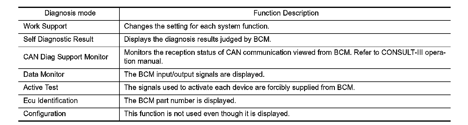 CONSULT-III performs the following functions via CAN communication with BCM.