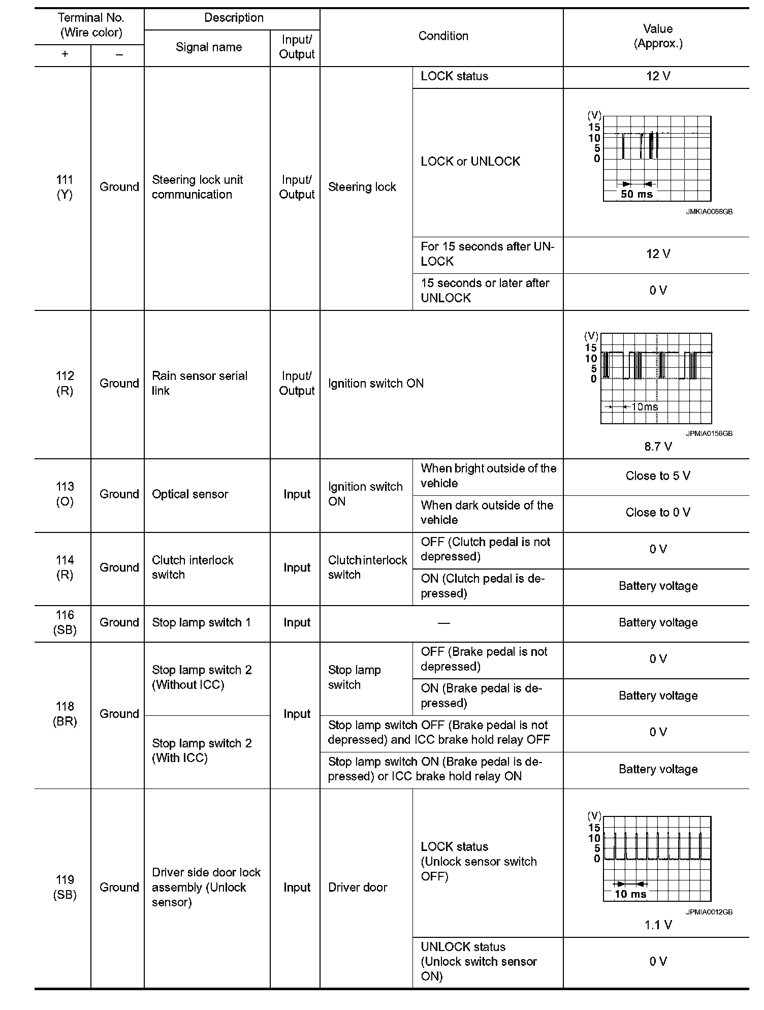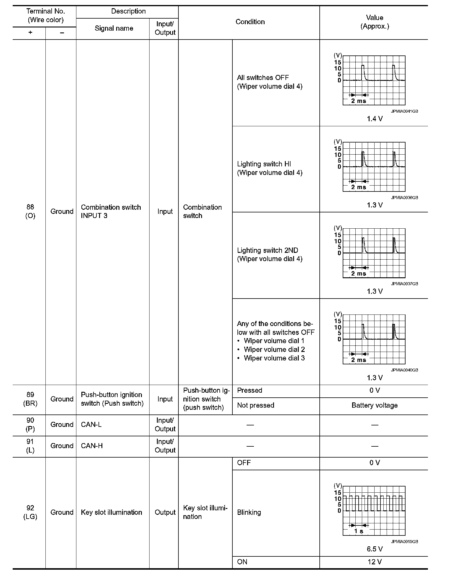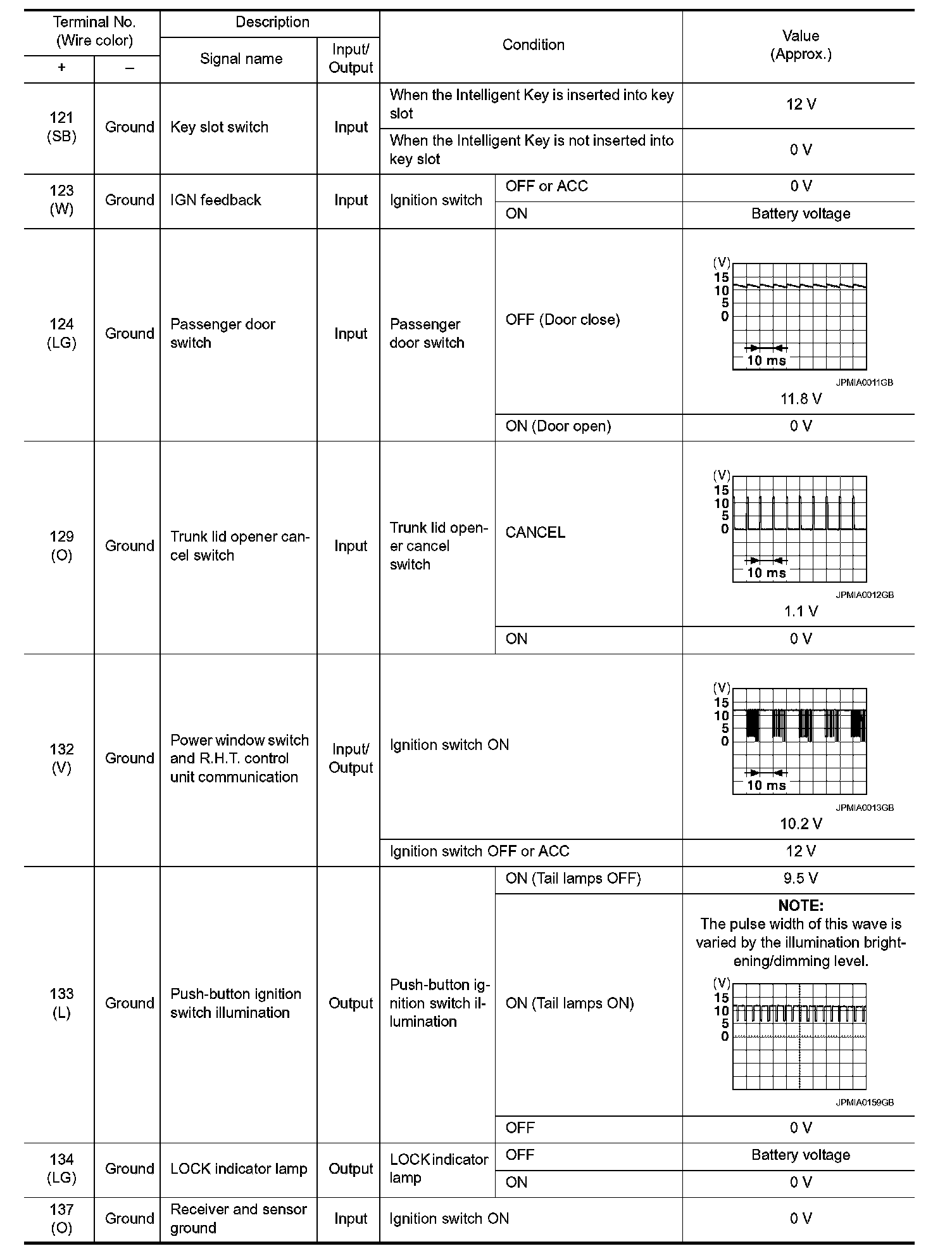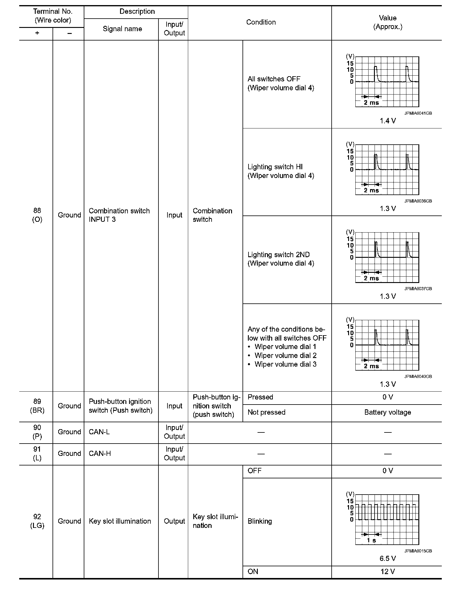 Pinout Values and Diagnostic Parameters