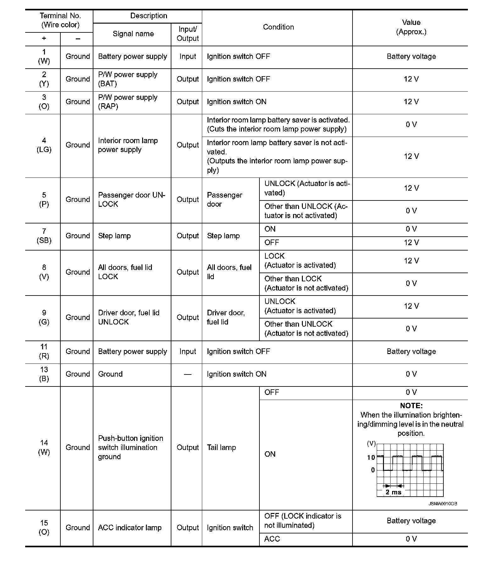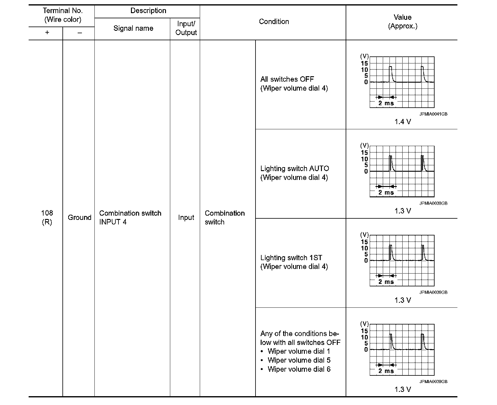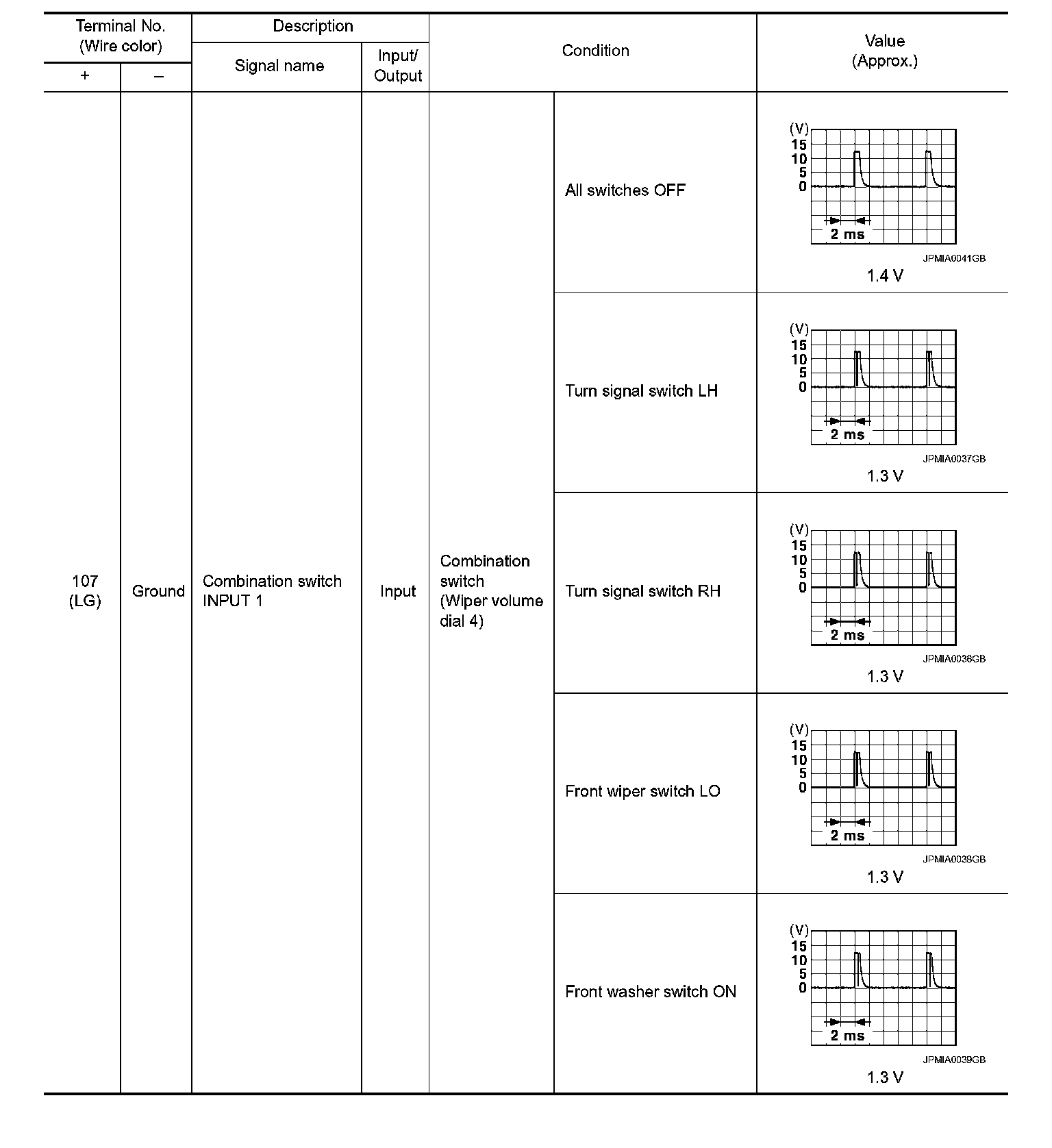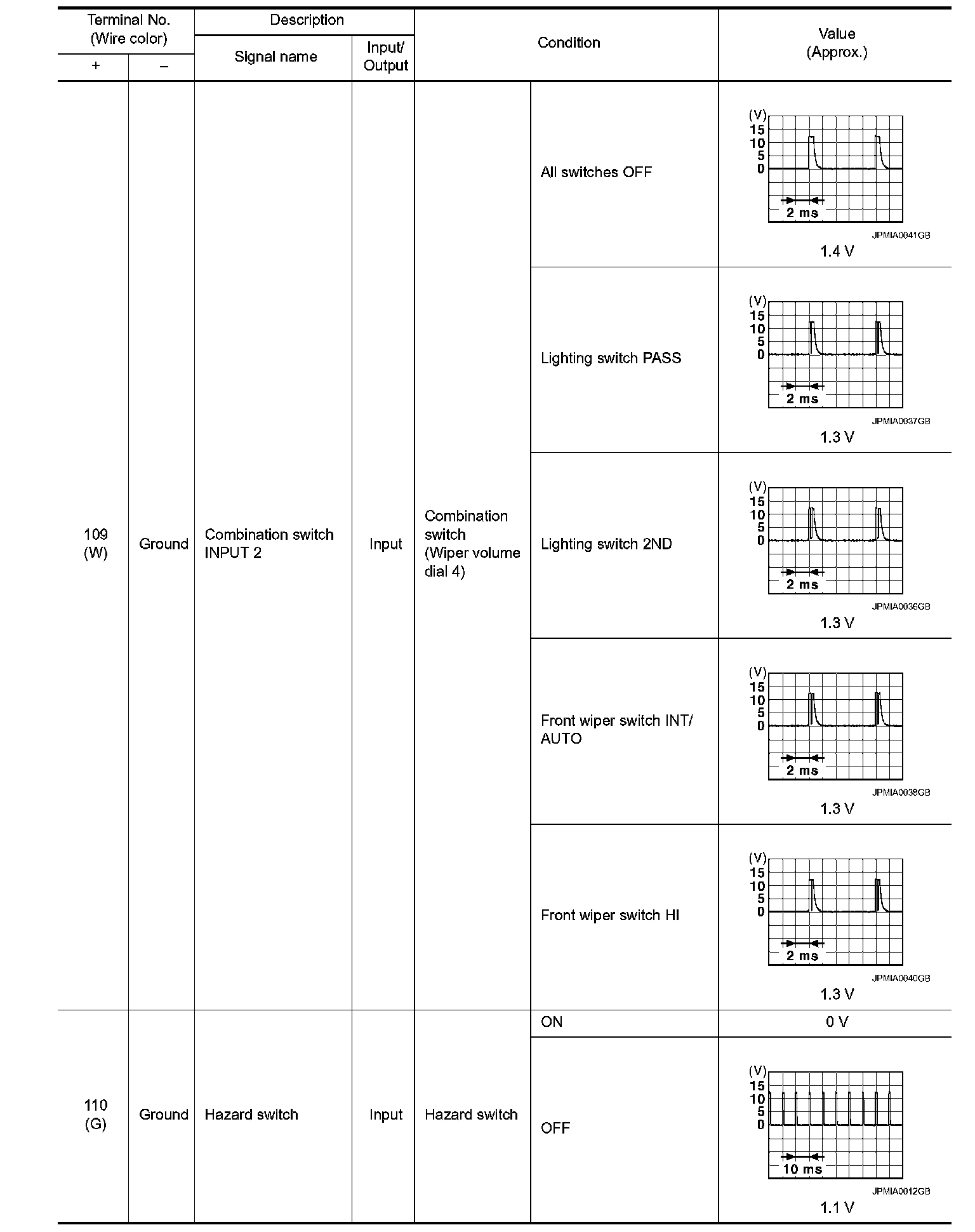 Pinout Values and Diagnostic Parameters