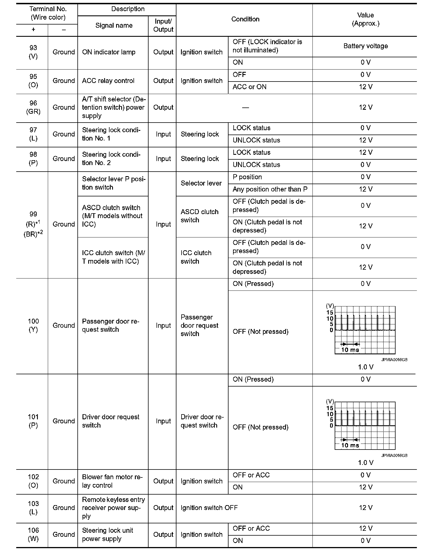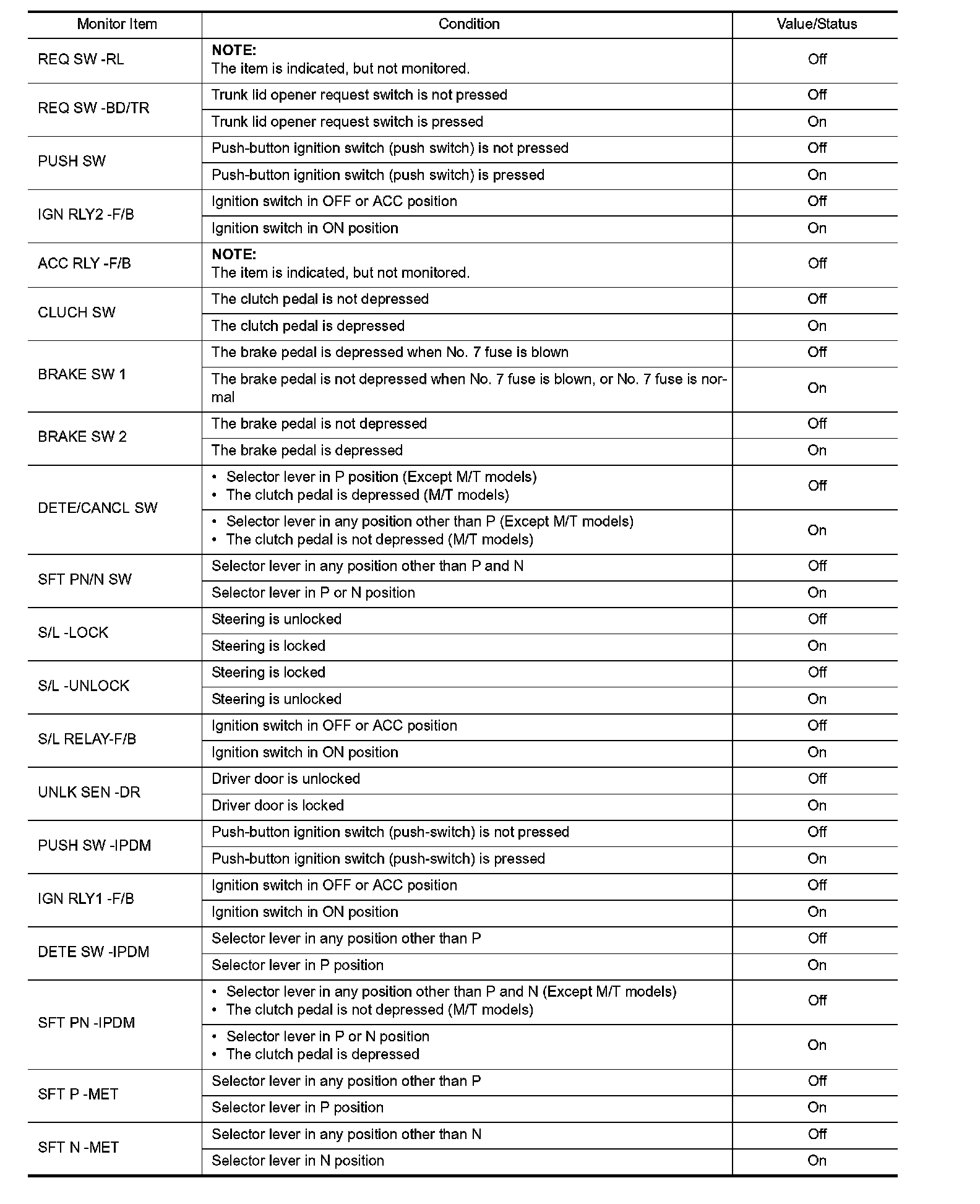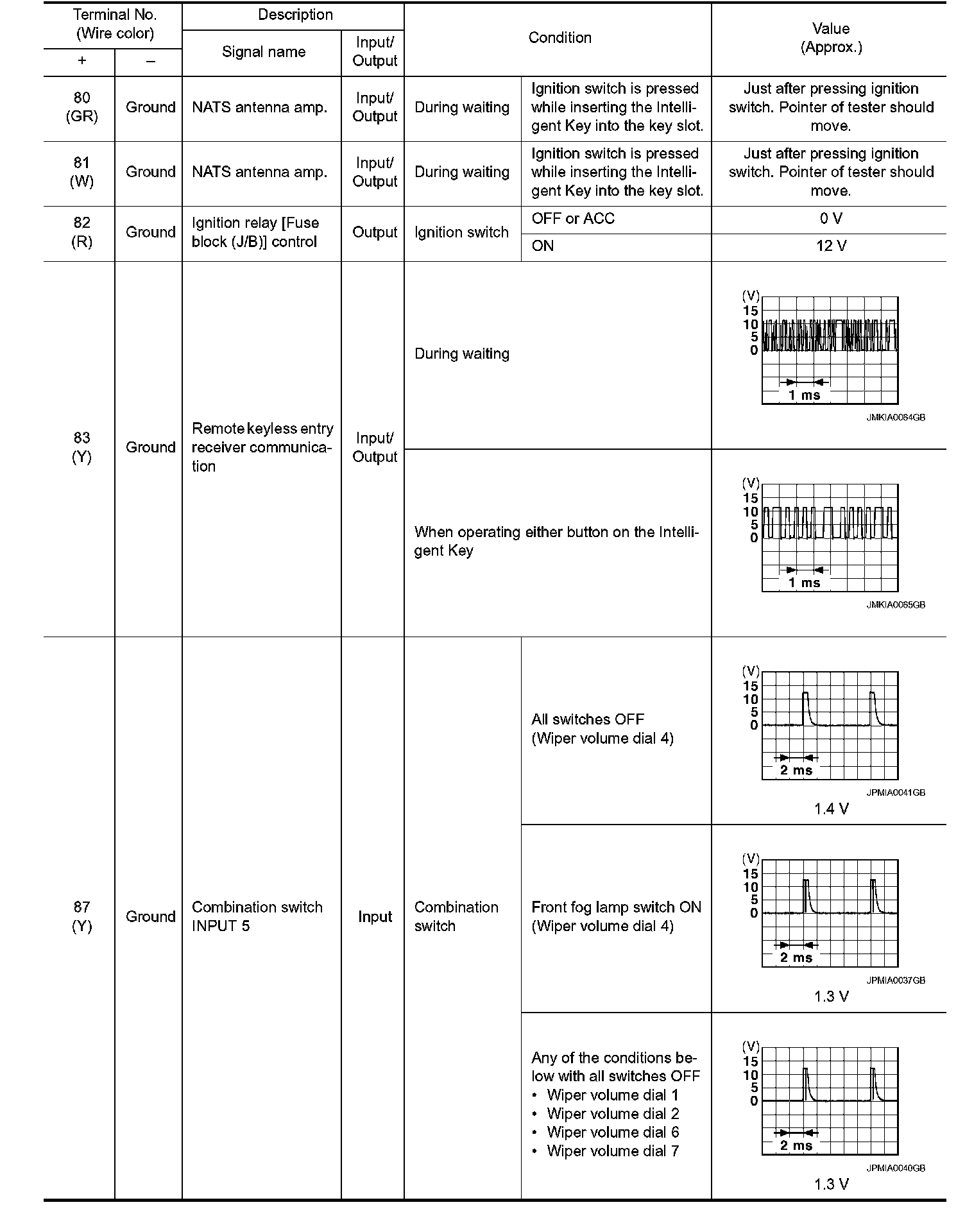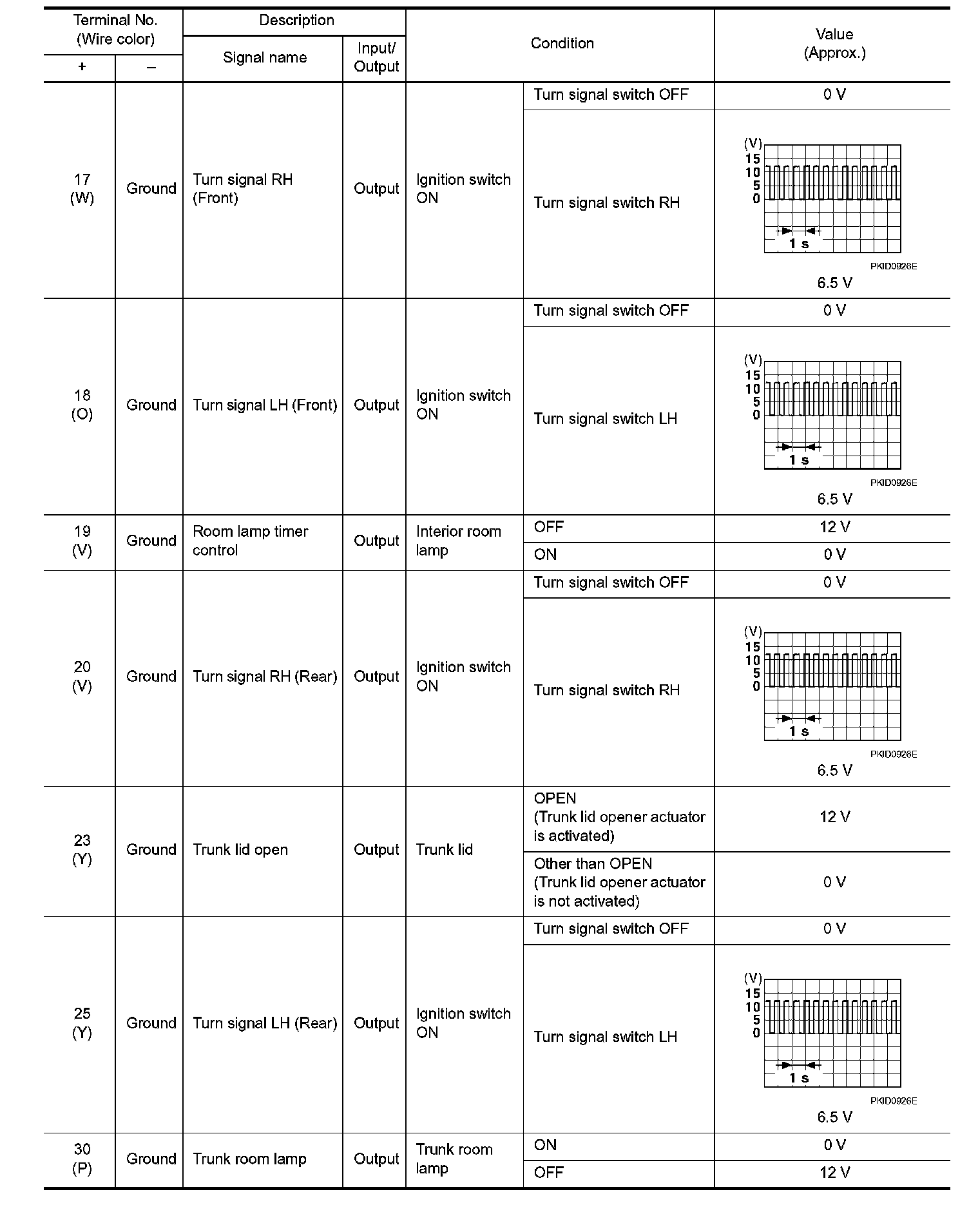 Pinout Values and Diagnostic Parameters