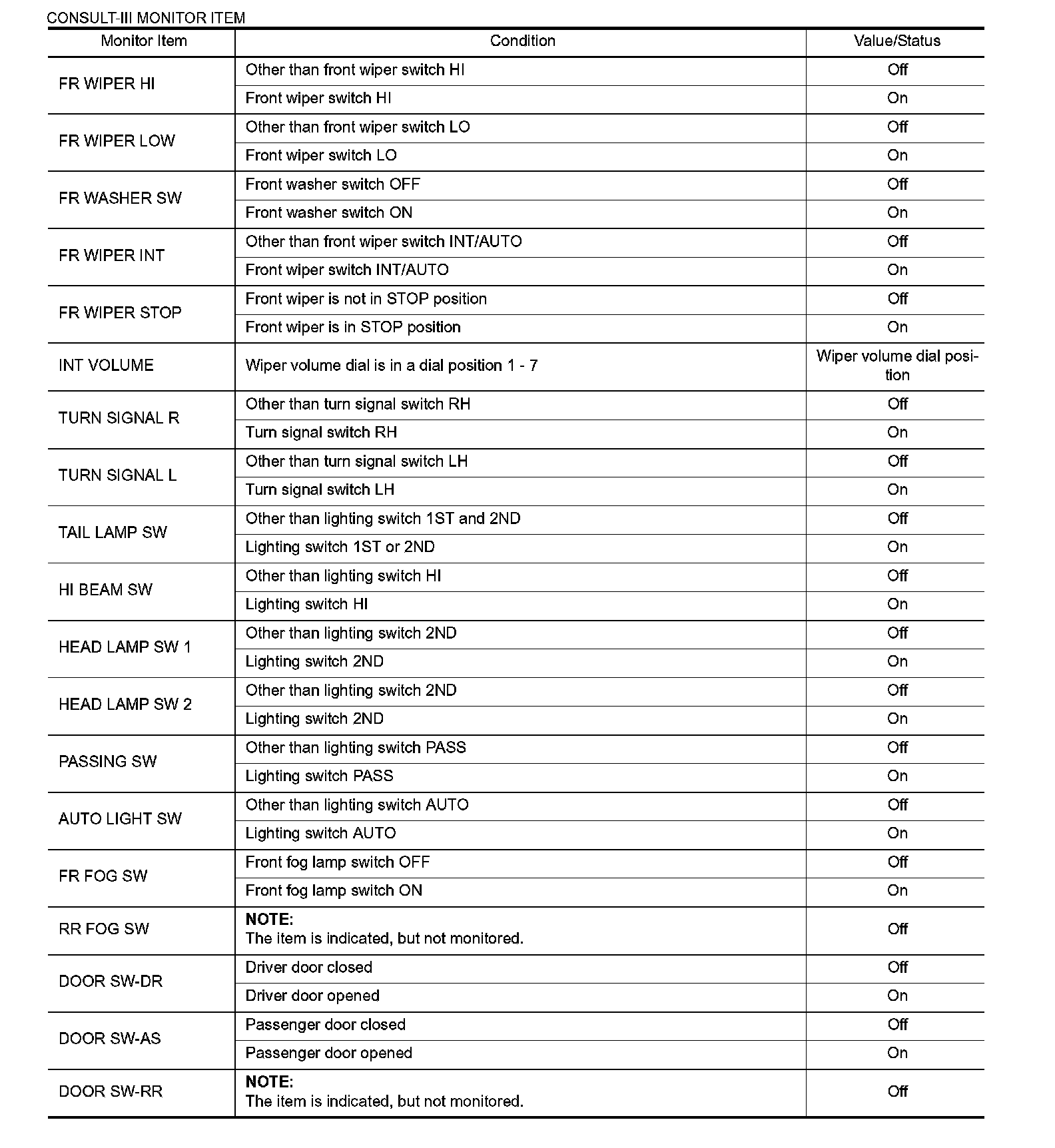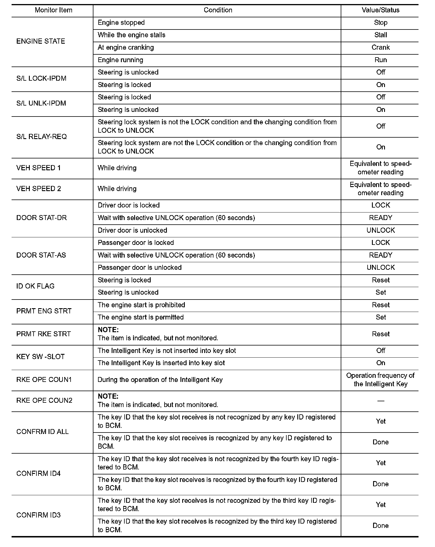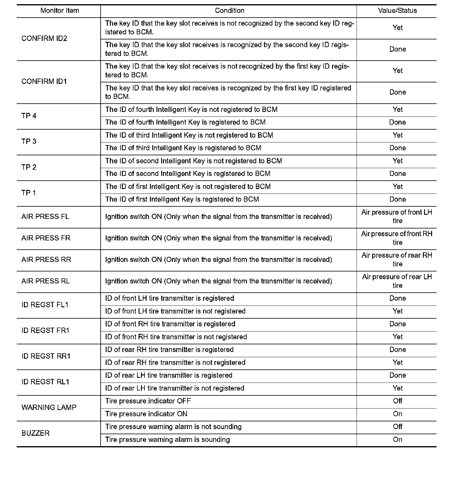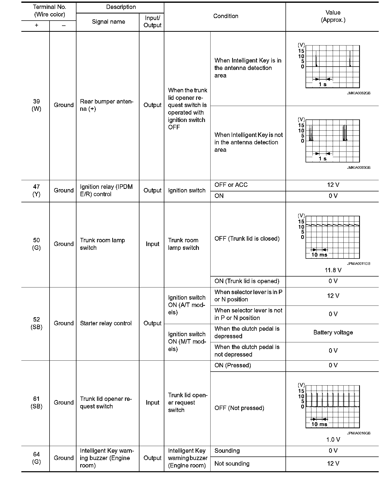Pinout Values and Diagnostic Parameters