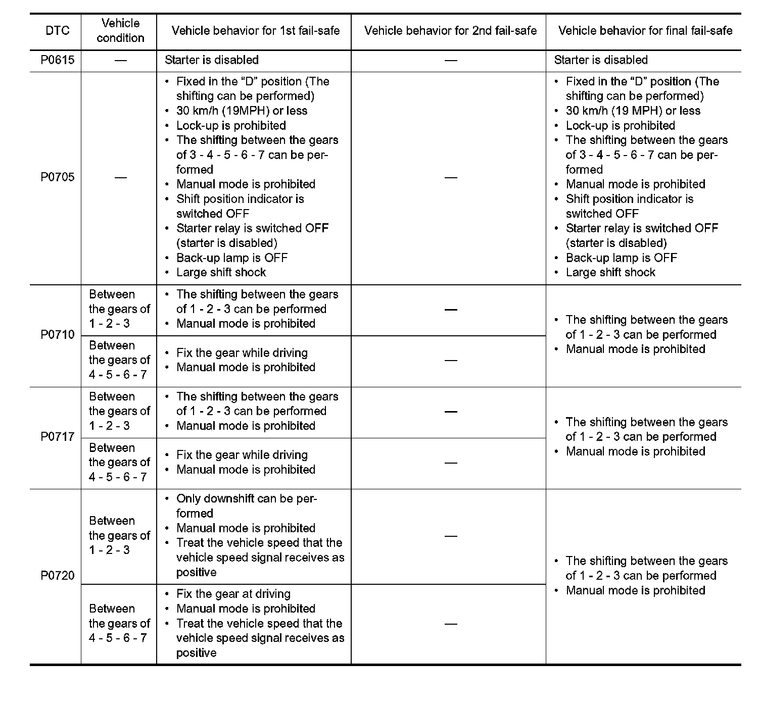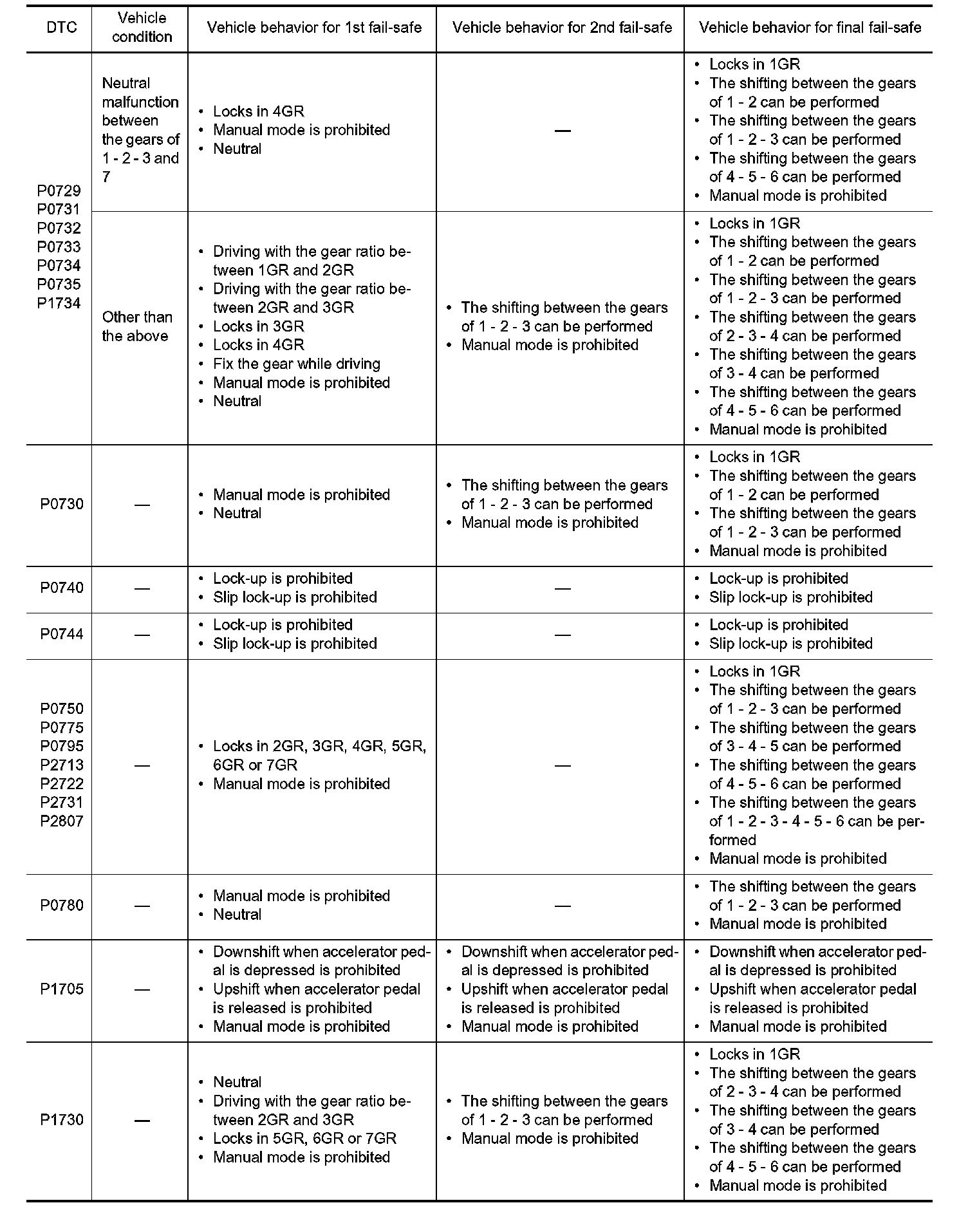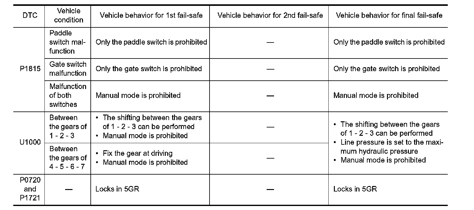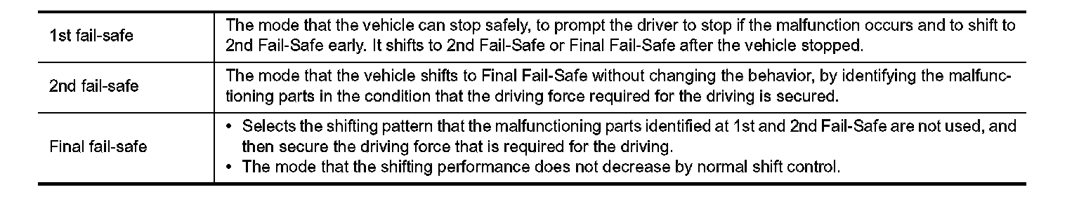 TCM has the electrical fail-safe mode. The mode is divided into a maximum of 3 phases (1st Fail-Safe, 2nd