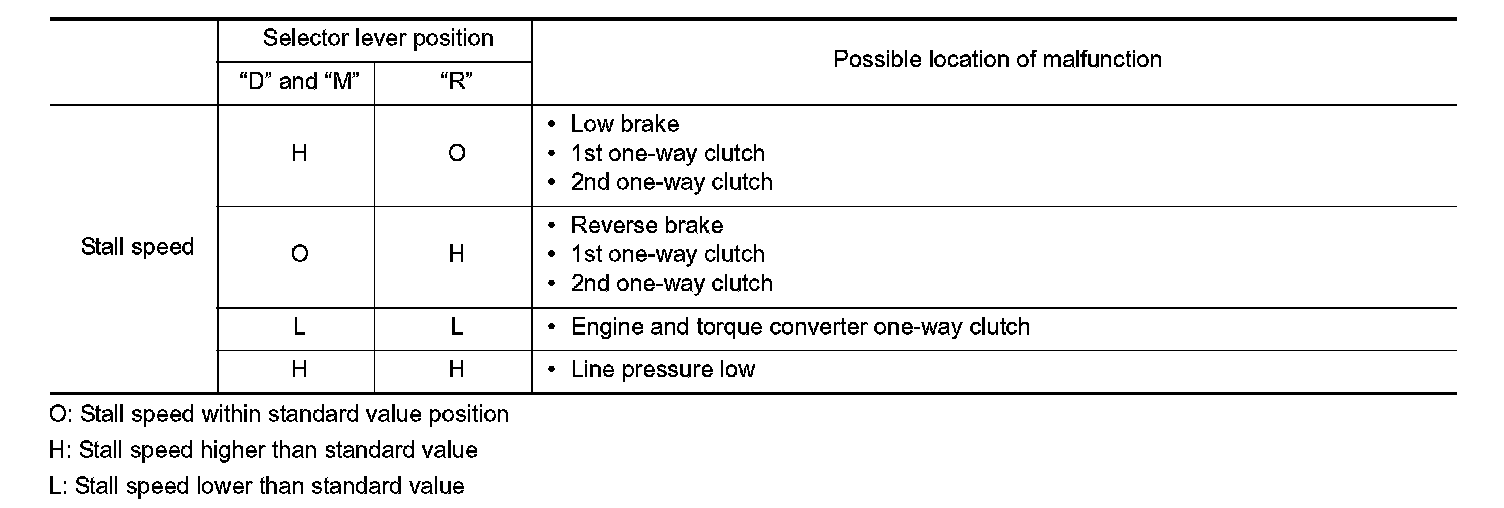 Stall speed : Refer to TM-272, "Stall Speed". Stall Speed