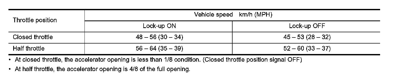 Vehicle Speed at Which Lock-up Occurs/Releases