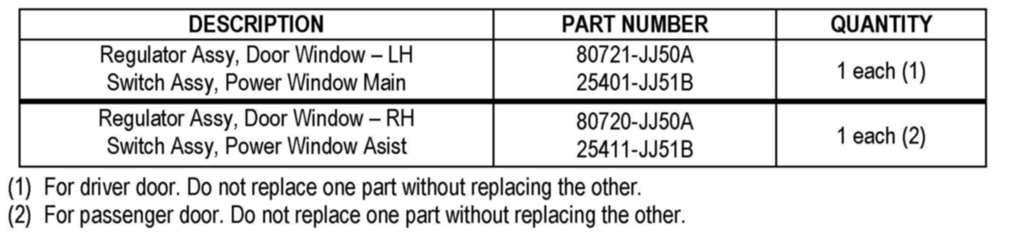 G37 CONVERTIBLE; FRONT DOOR POWER WINDOW SWITCH OR REGULATOR REPLACEMENT