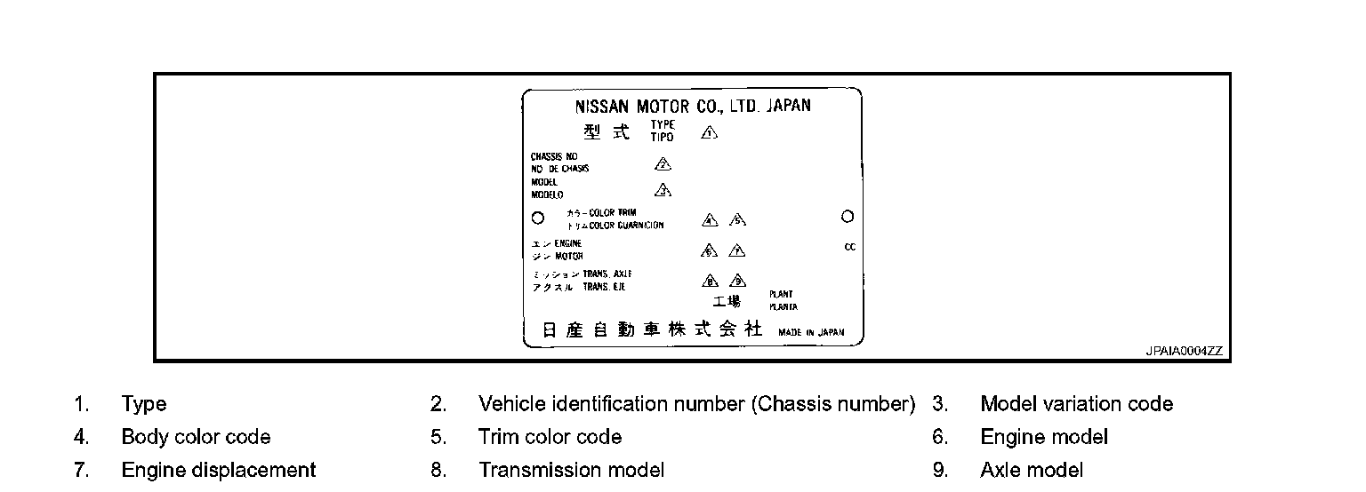 VEHICLE IDENTIFICATION NUMBER ARRANGEMENT