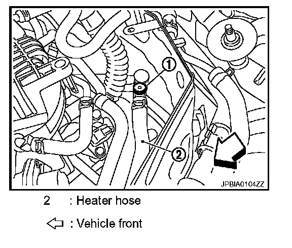 5. Remove air relief plug (1) on heater hose.