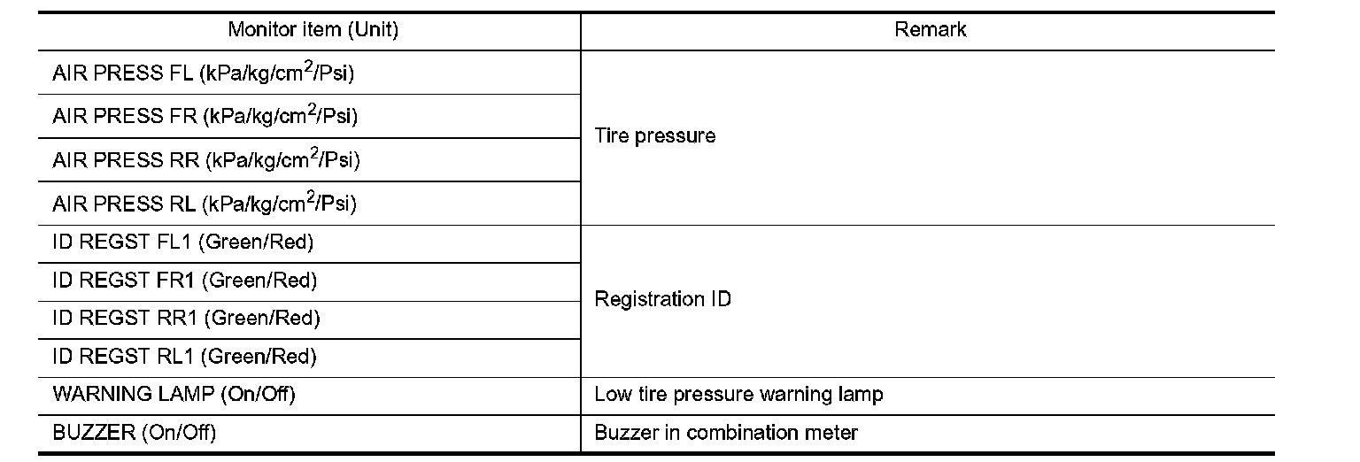 AIR PRESSURE MONITOR : CONSULT-III Function (BCM - AIR PRESSURE MONITOR)