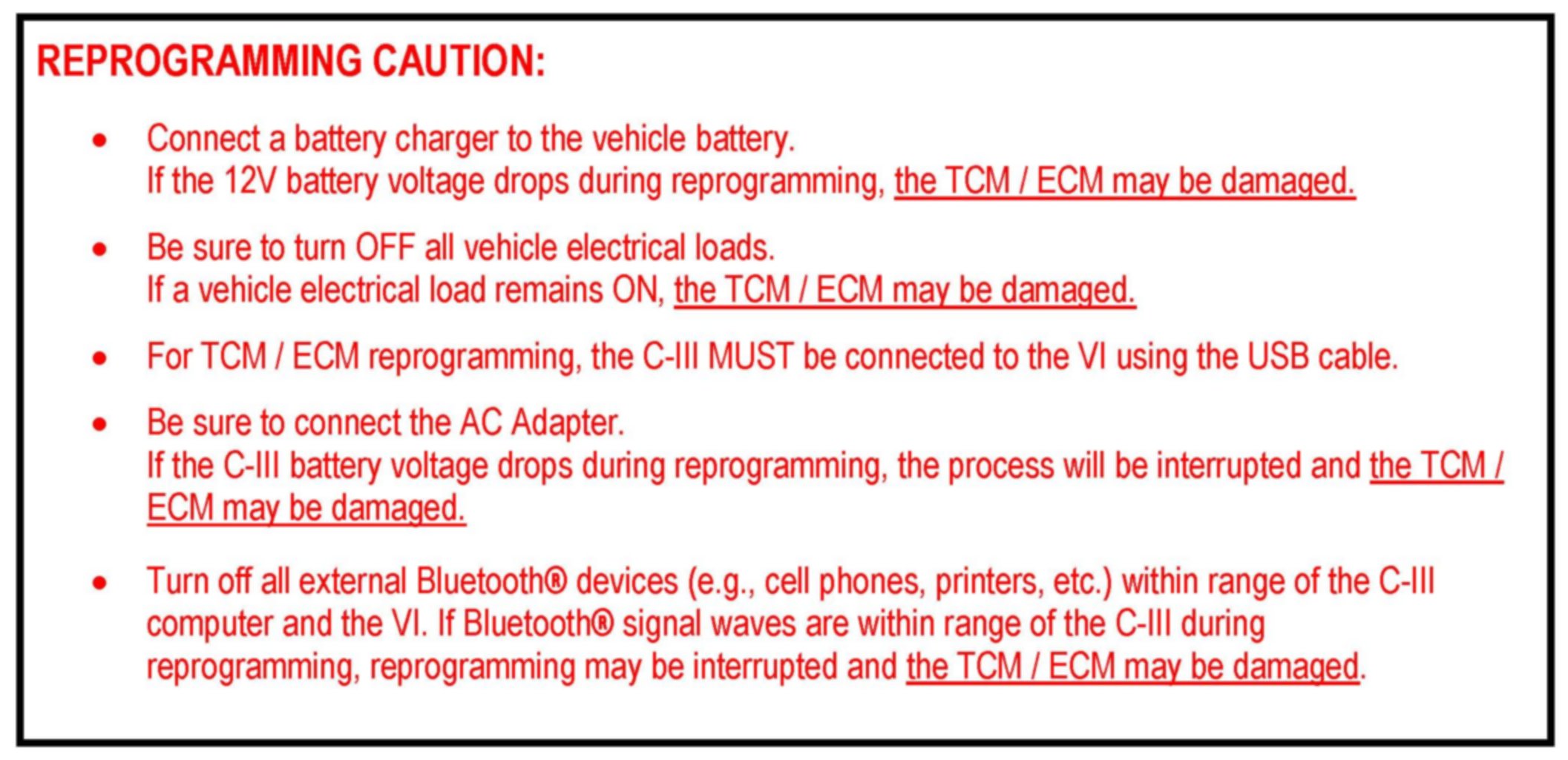 ^ During TCM reprogramming DTCs will set in several systems and must be erased before ECM reprogramming.