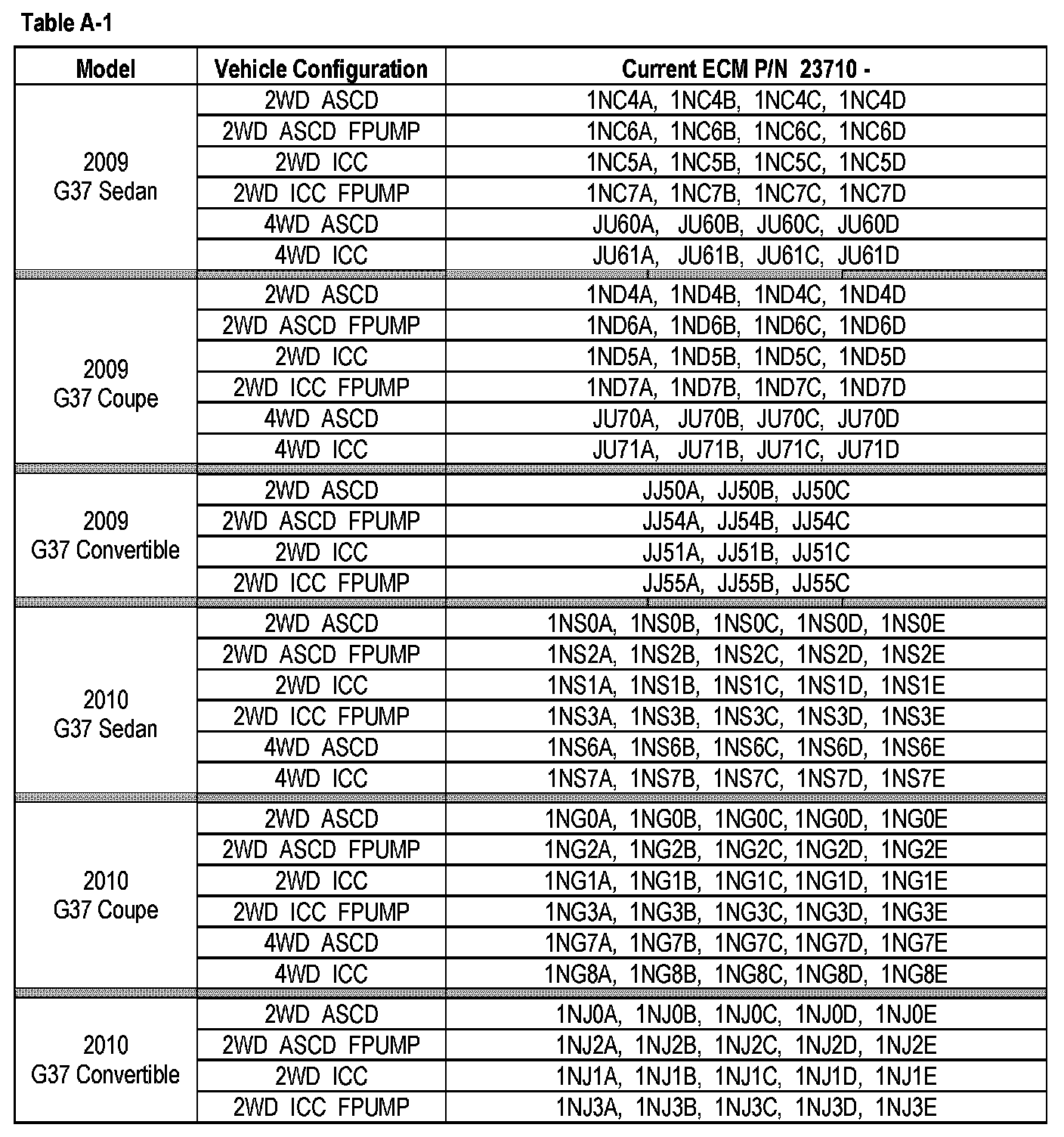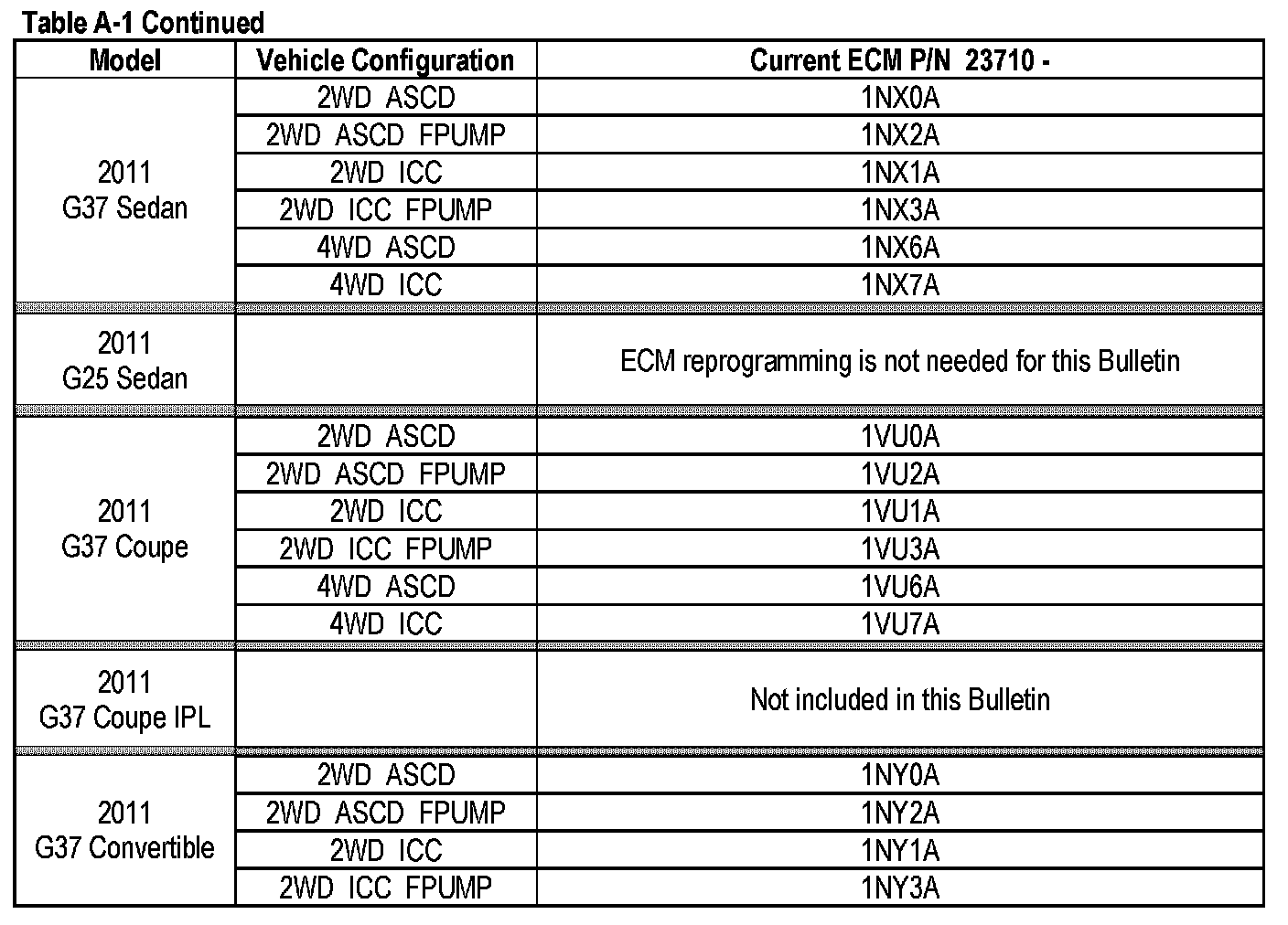 4. Compare the Part Number you wrote down to the numbers in the Current ECM P/N column in Table A-1.