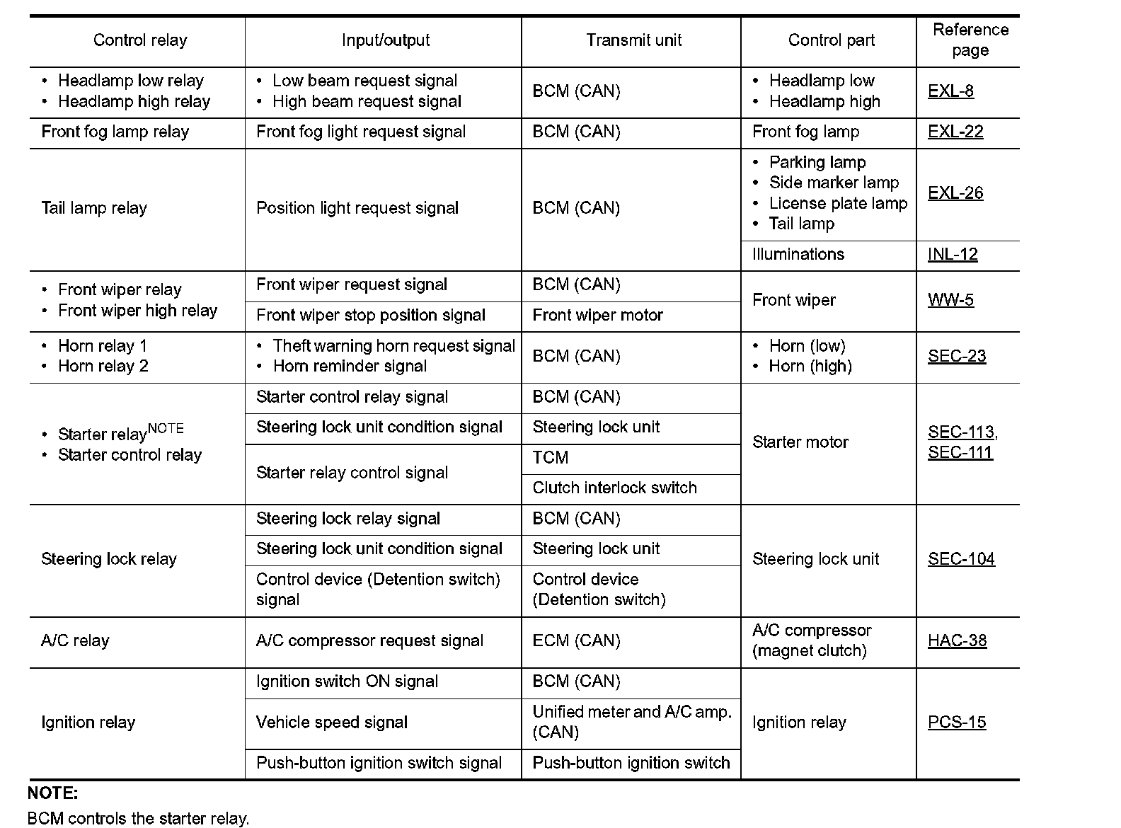 IPDM E/R activates the internal control circuit to perform the relay ON-OFF control according to the input signals from various sensors and the request signals received from control units via CAN communication.