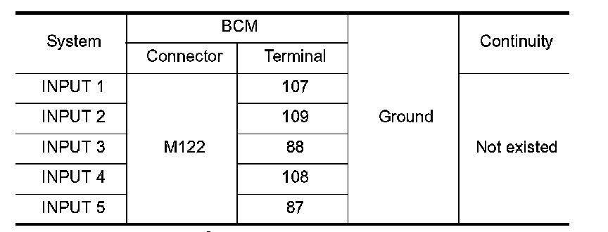 2.CHECK INPUT 1 - 5 SYSTEM CIRCUIT FOR SHORT