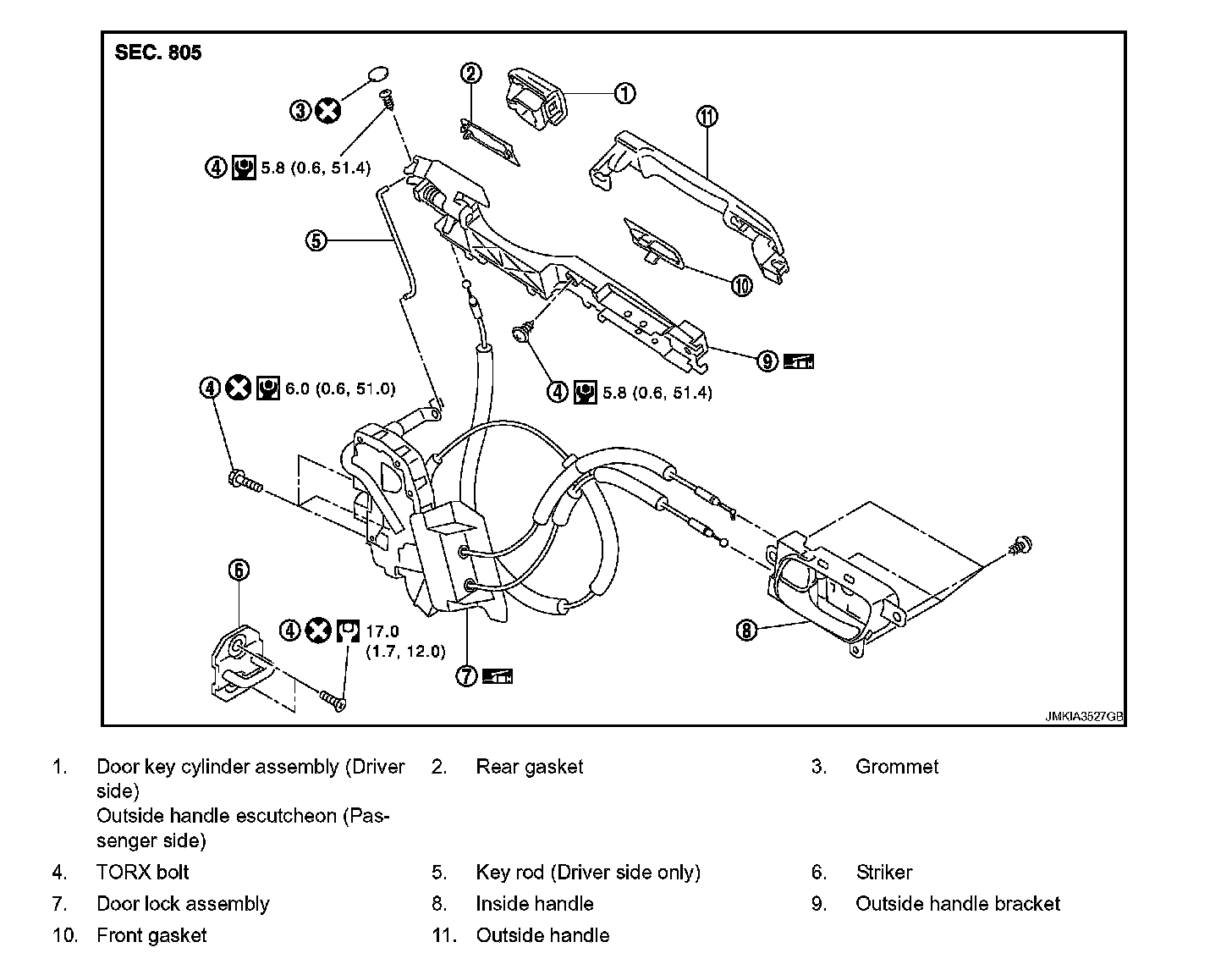 FRONT DOOR LOCK : Exploded View