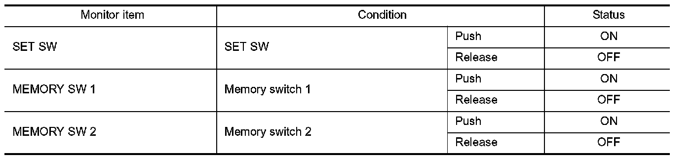 2. Select "MEMORY SW 1", "MEMORY SW 2" "SET SW" in "Data monitor" mode using CONSULT-III.