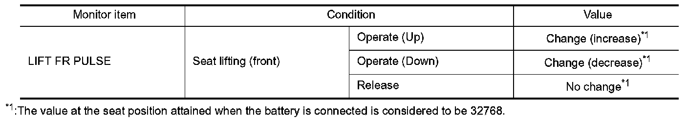 3. Check the lifting sensor (front) signal under the following conditions.