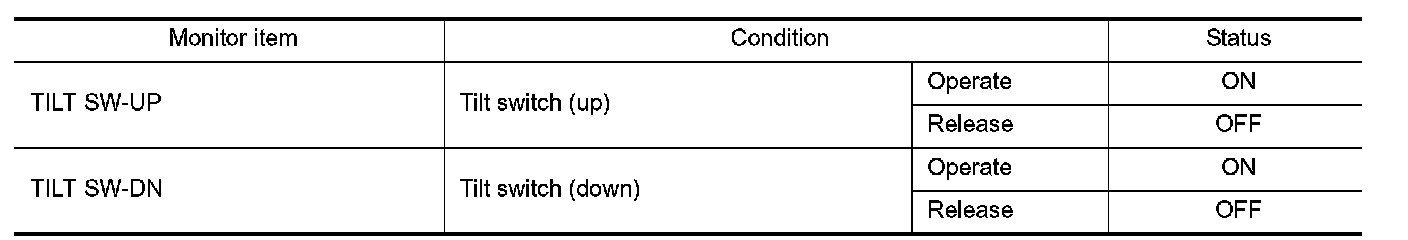 2. Select "TILT SW-UP", "TILT SW-DN" in "Data monitor" mode using CONSULT-III.