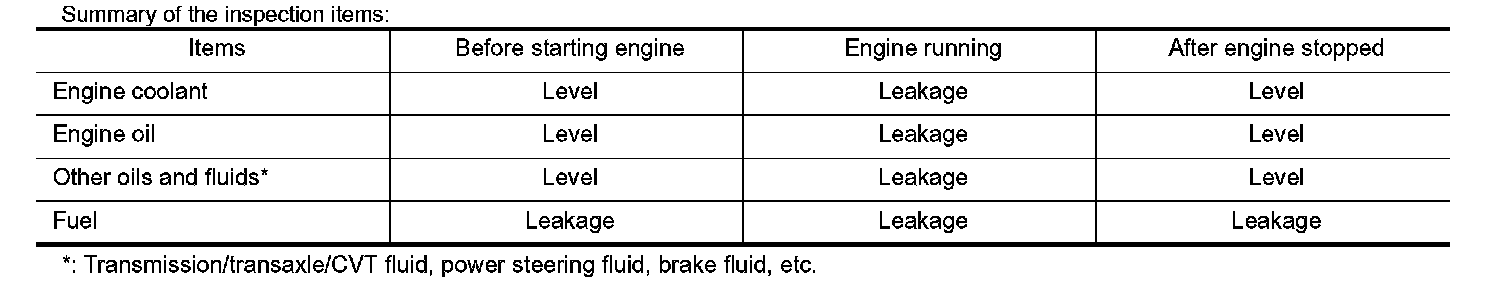 The following are procedures for checking fluid leakage, lubricant leakage.