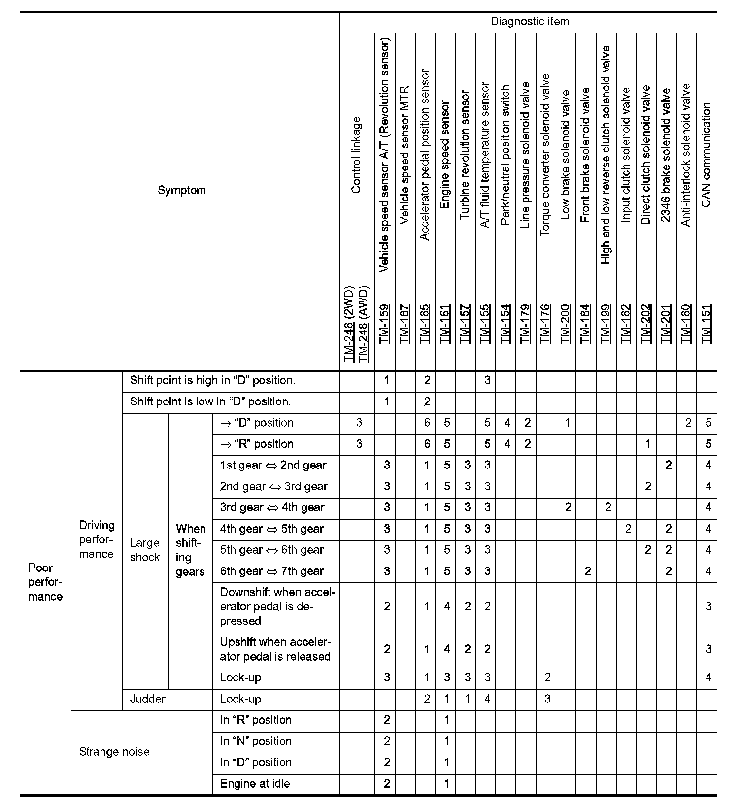 The diagnostics item numbers show the sequence for inspection. Inspect in order from item 1.