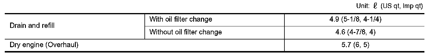 ENGINE OIL CAPACITY (APPROXIMATE)