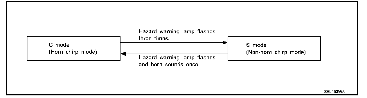 The hazard and horn reminder has a horn chirp mode (C mode) and a non-horn chirp mode (S mode).