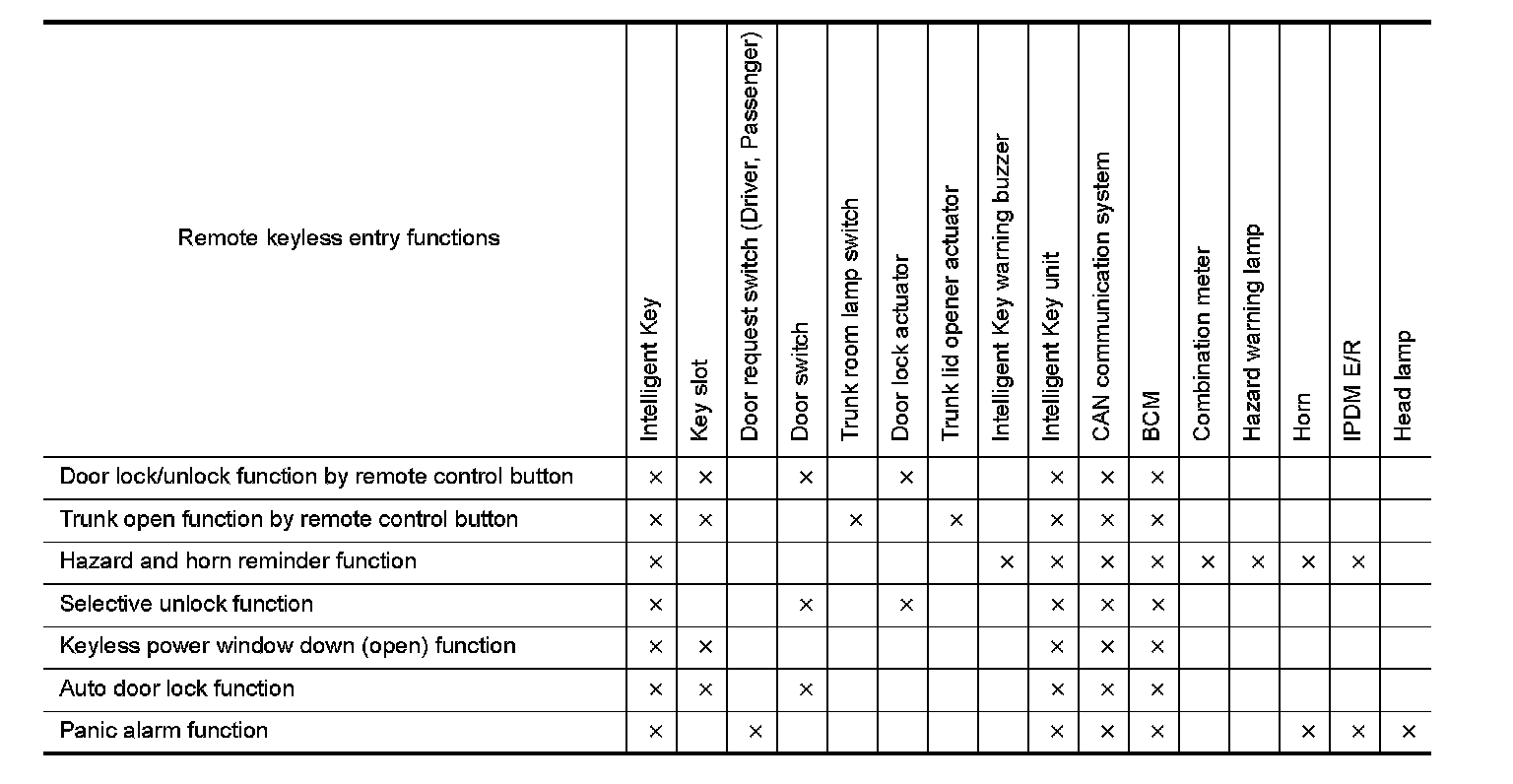 - Intelligent Key unit sends the door lock/unlock signal to BCM.