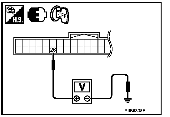2. Check voltage between Intelligent Key unit connector and ground.