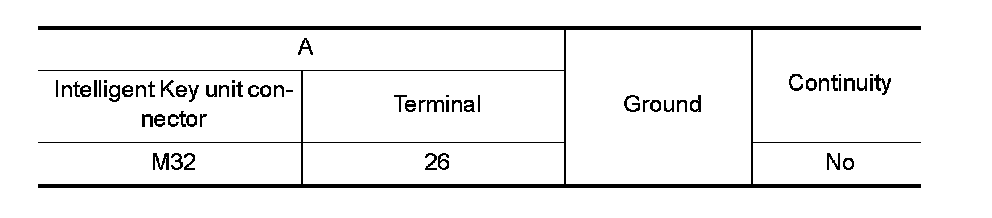 4. Check continuity between Intelligent Key unit connector and ground.