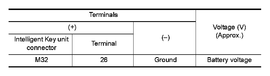 Check voltage between Intelligent Key unit connector and ground.
