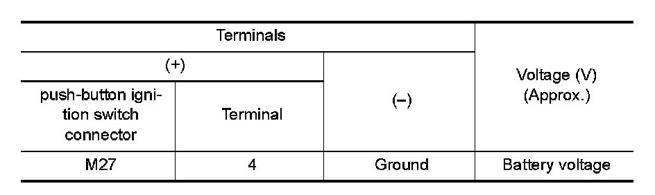 3. Check voltage between push-button ignition switch connector and ground.