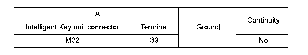 3. Check continuity between Intelligent Key unit connector and ground.