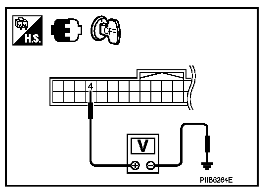 3. Check voltage between Intelligent Key unit connector and ground.