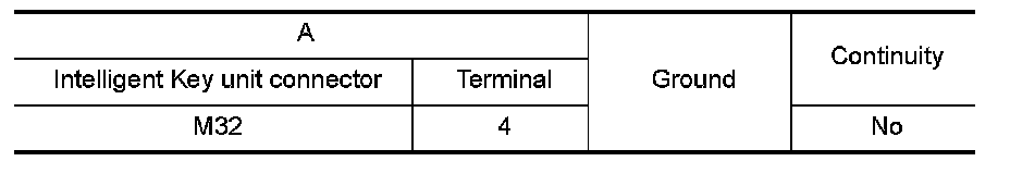 3. Check continuity between Intelligent Key unit connector and ground.