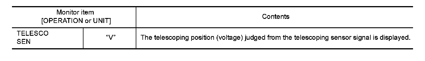 Operate the telescopic switch with "TELESCO SEN" on the DATA MONITOR to make sure the voltage changes.