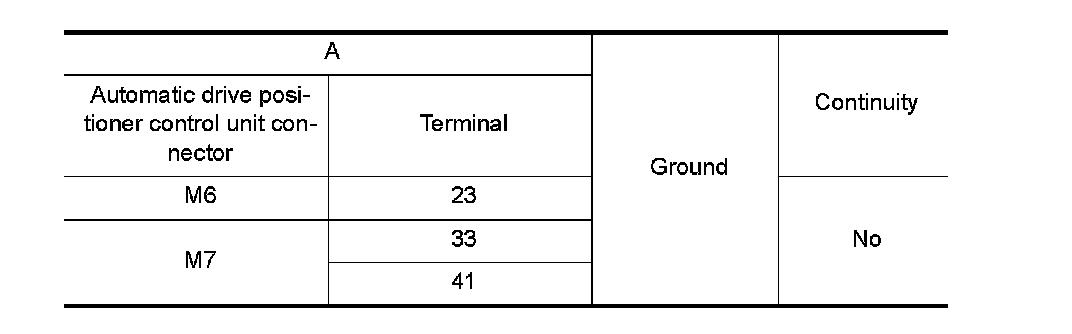 3. Check continuity harness between automatic drive positioner control unit connector and ground.