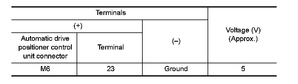 2. Check voltage between automatic drive position control unit connector and ground.