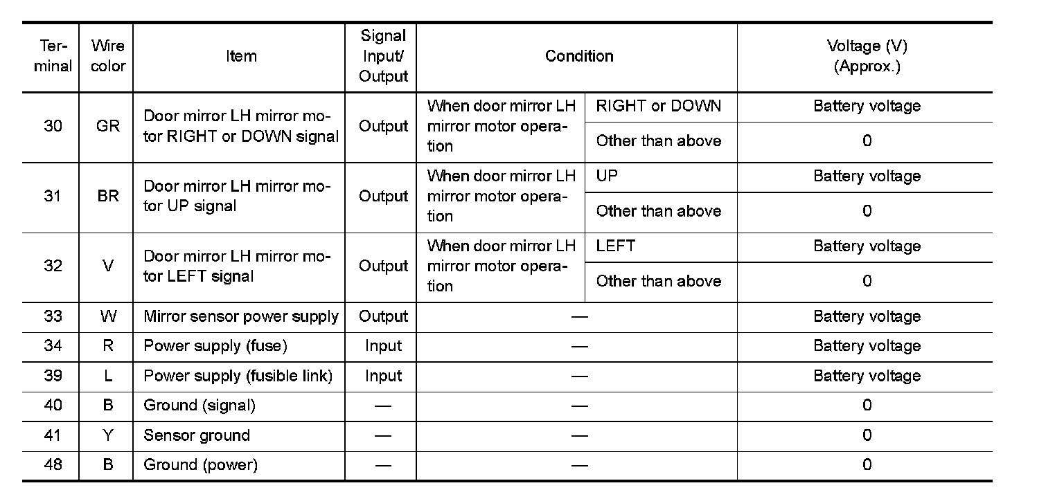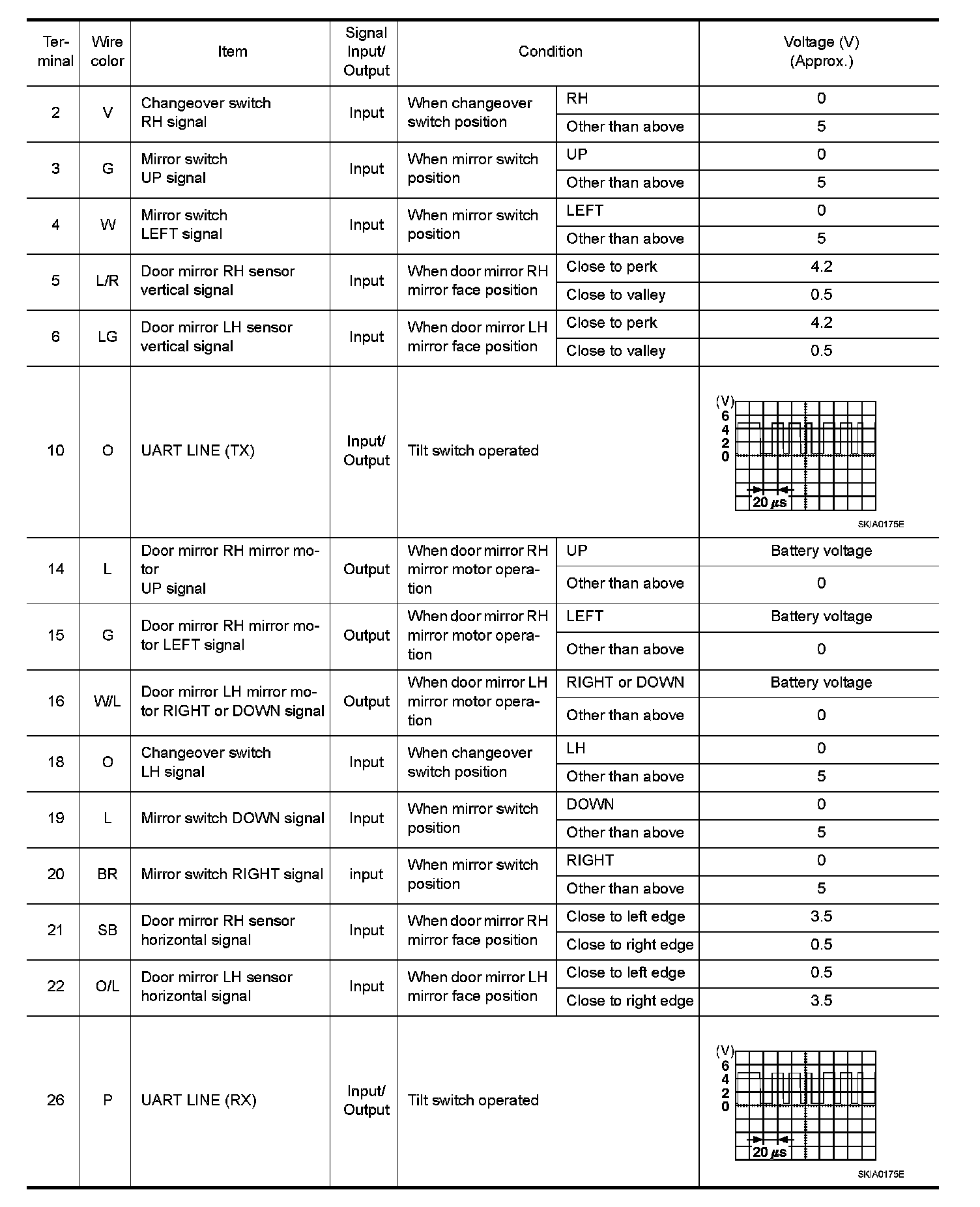 Pinout Values and Diagnostic Parameters