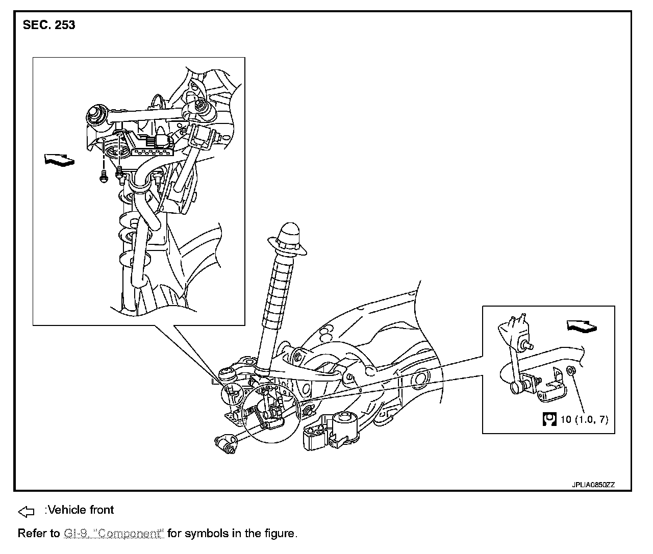 2. Remove height sensor link bracket mounting nut. (rear stabilizer side)