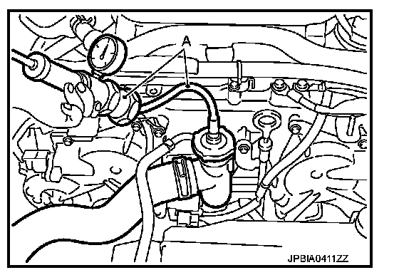 - To check for leakage, apply pressure to the cooling system with the radiator cap tester (commercial service tool) and radiator cap tester adapter (commercial service tool) (A).