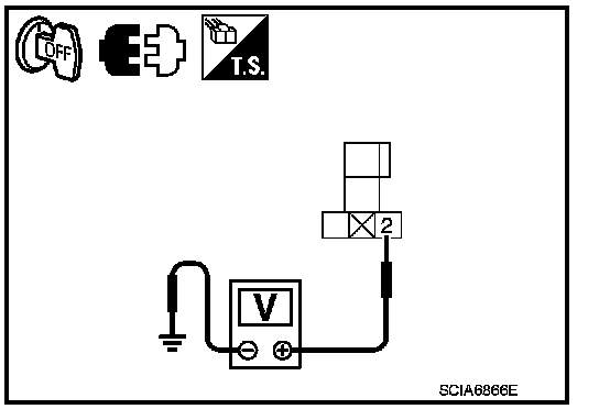 3. Check voltage between shift lock relay E35 terminal 2 and ground.