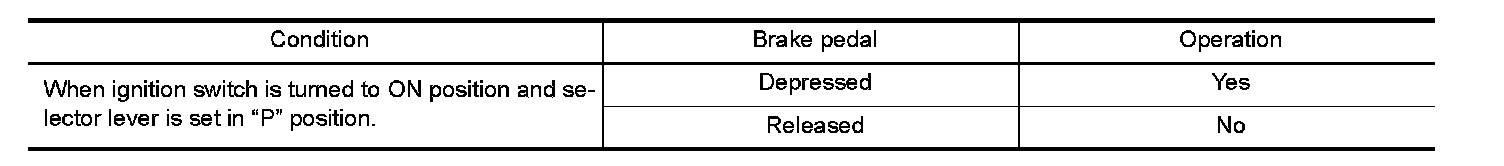 - Selector lever can be moved from "P" position with key in ON position and brake pedal released.
