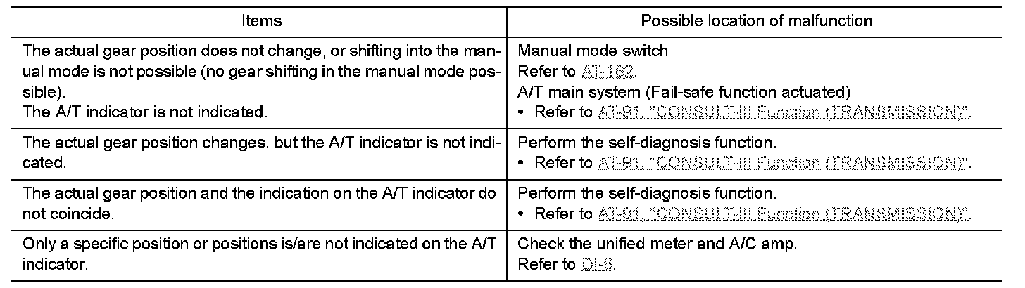 A/T INDICATOR SYMPTOM CHART
