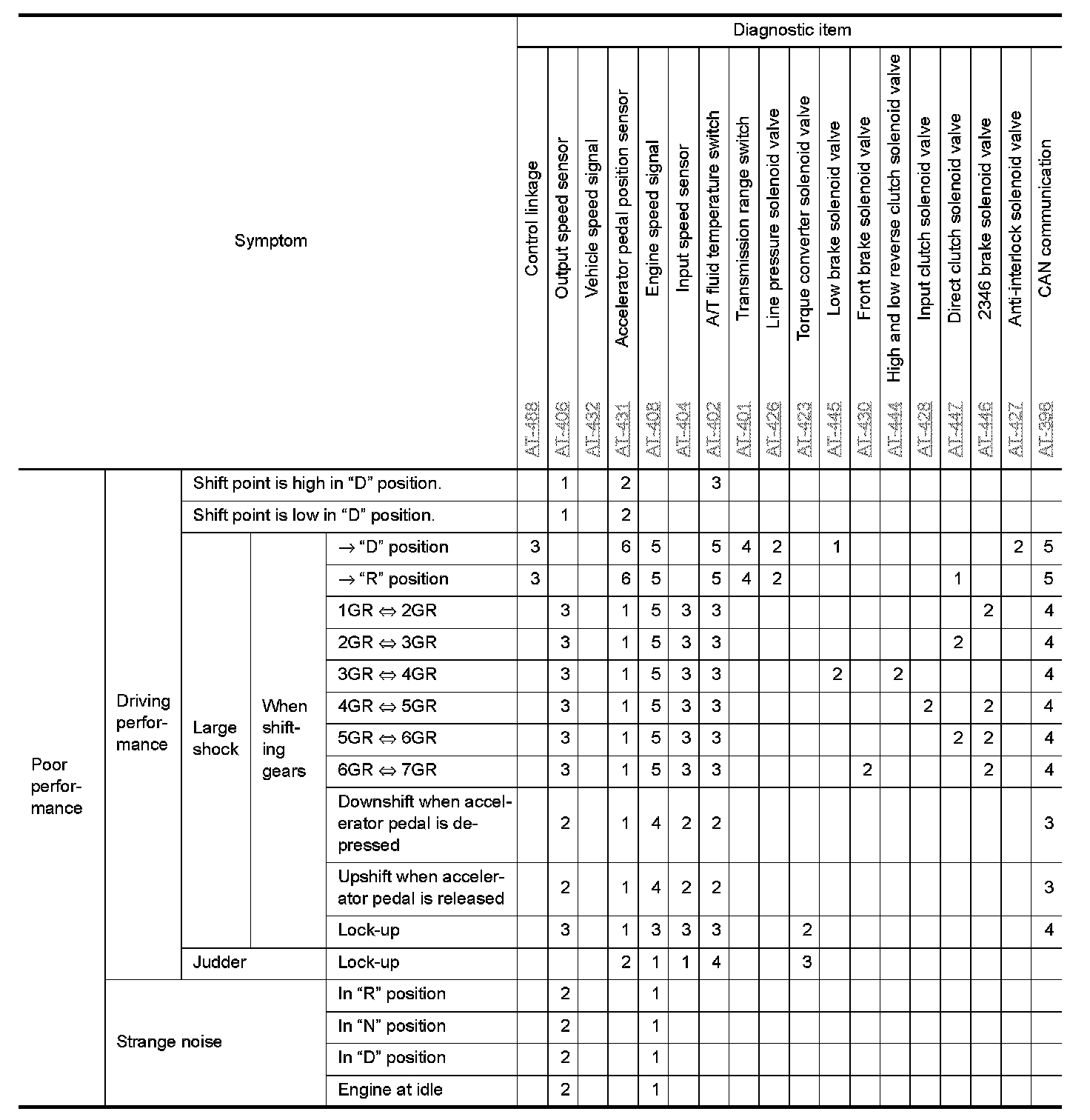 The diagnostics item numbers show the sequence for inspection. Inspect in order from item 1.